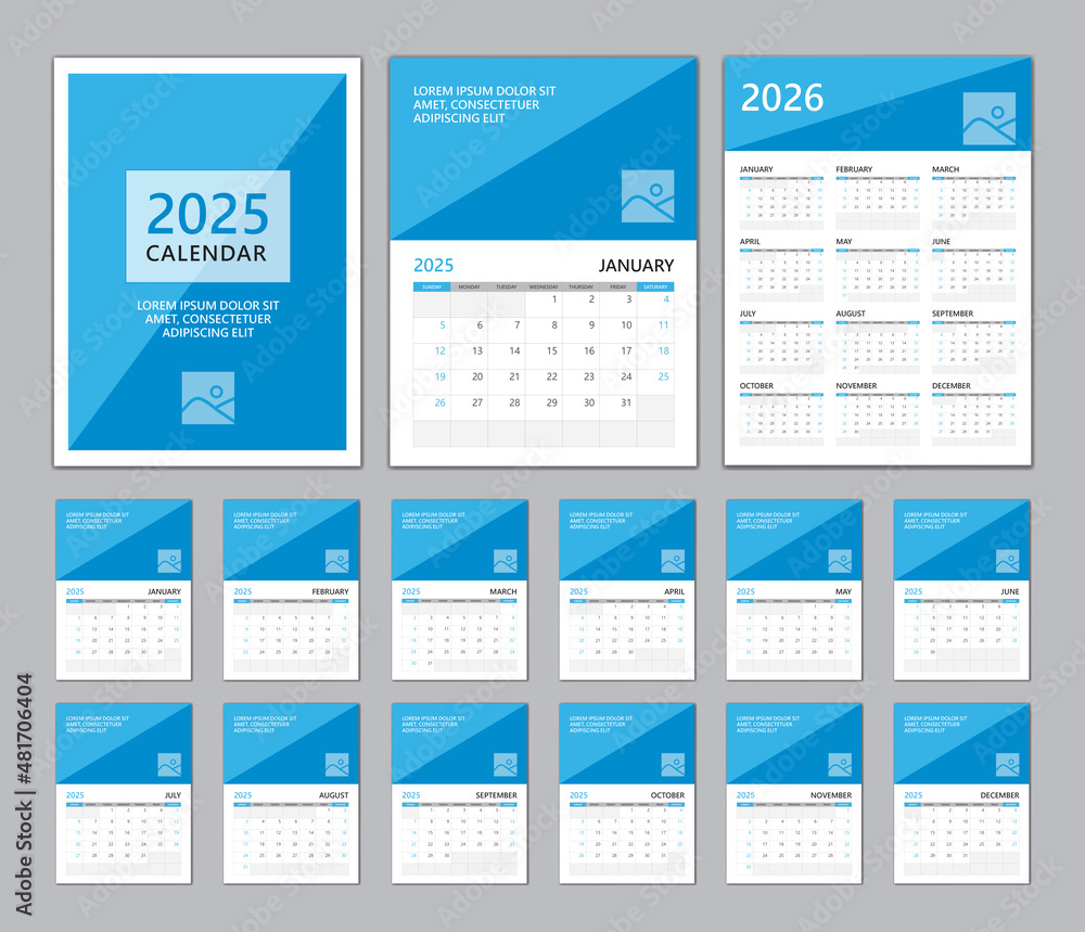 Calendar 2025 2026 template, Set Desk calendar 2025 template, Set